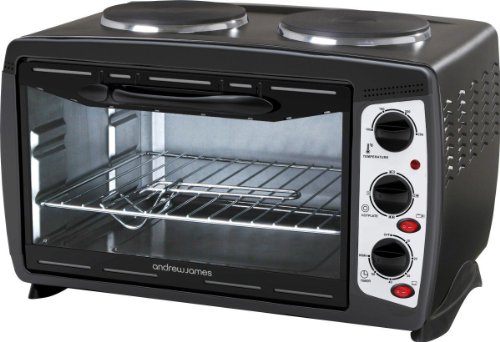 - Andrew James Black 23 Litre Mini Oven And Grill with Double Hot Plate is ideal for all your cooking needs. The compact design allows the oven is to operate in any small kitchens or room with limited space. The oven can also be easily transported making it ideal for holiday homes or camping holidays