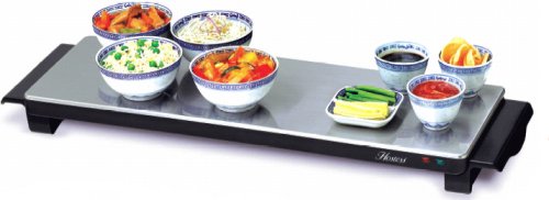 We are so pleased with this hot tray, it works a treat. We chose this one as it fitted well on our rectangular table, the width enables it to fit well between the opposite place settings. It also stays hot for the length of the meal when pre- heated and is a plain and simple stream line design, we are delighted with it!!
